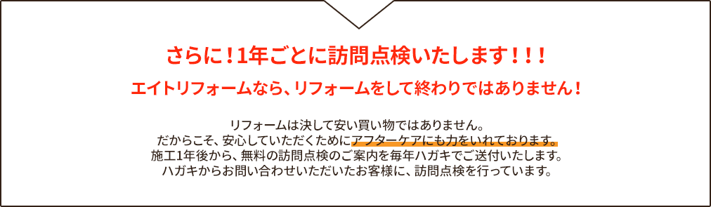 エイトリフォームでは、3年〜最長10年の自社保証をご用意しています。